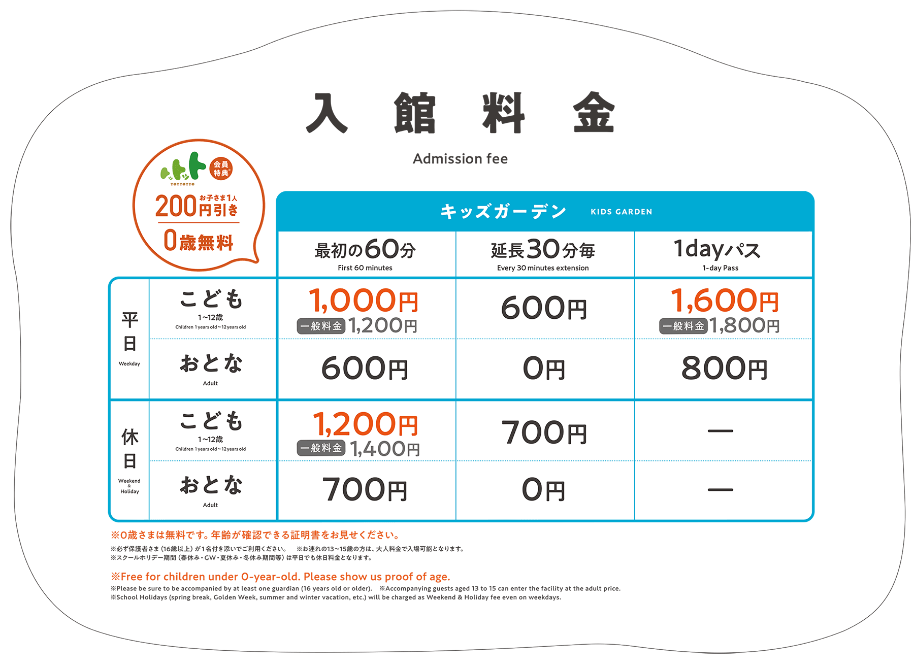 ちきゅうのにわ 白山店は、2026年3月10日よりトットット会員料金を導入いたします。