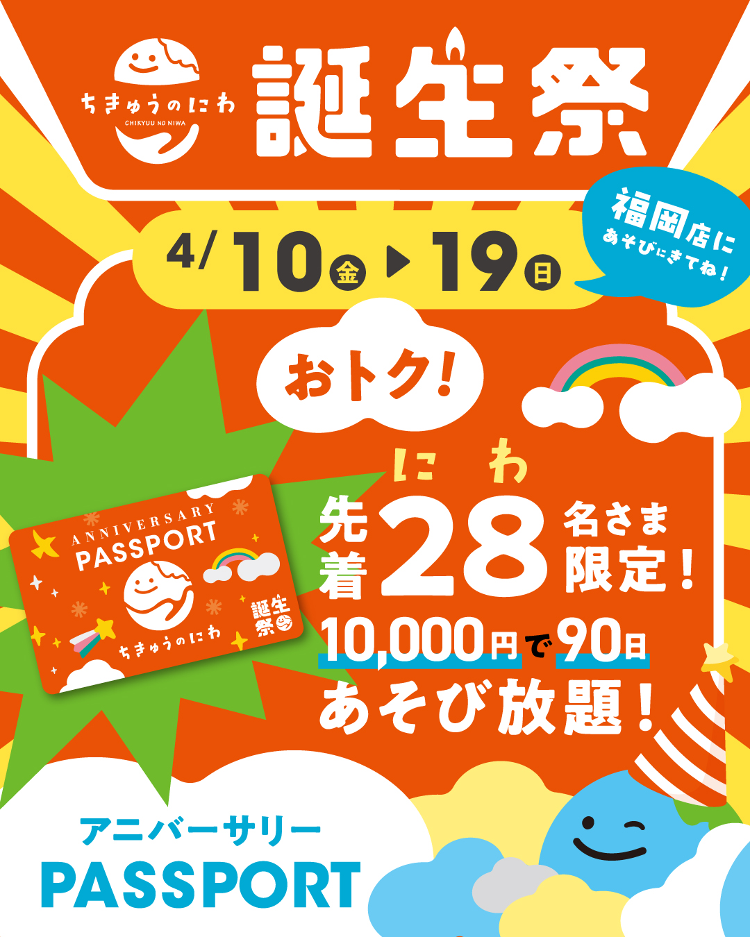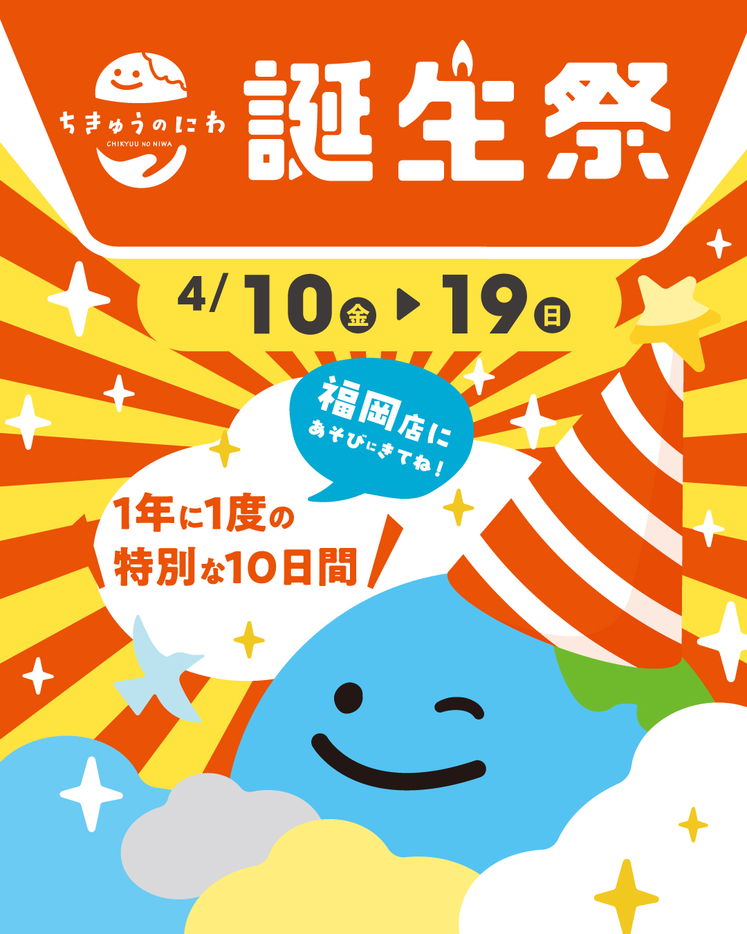 ちきゅうのにわ福岡店では、1周年を記念して誕生祭を実施します!