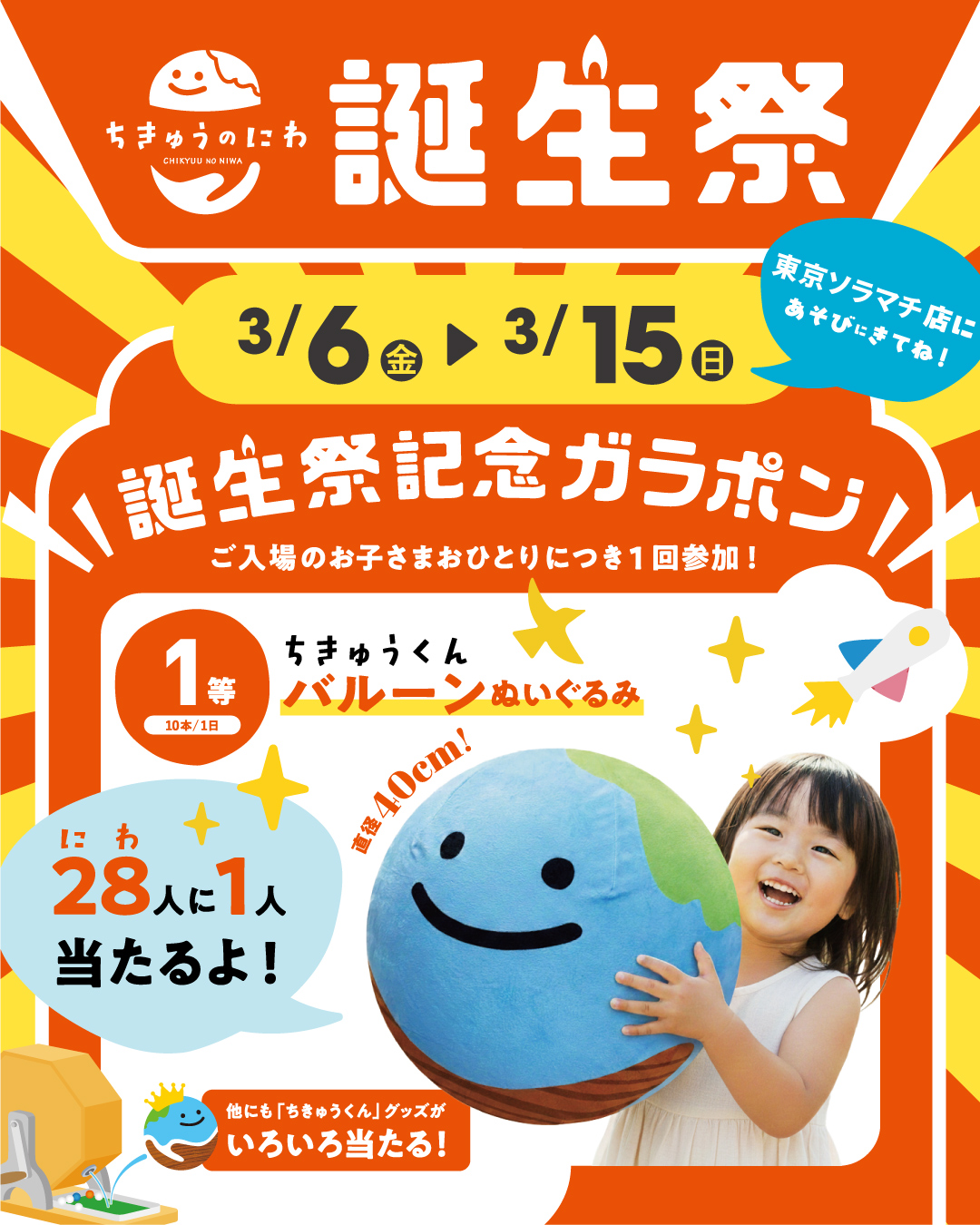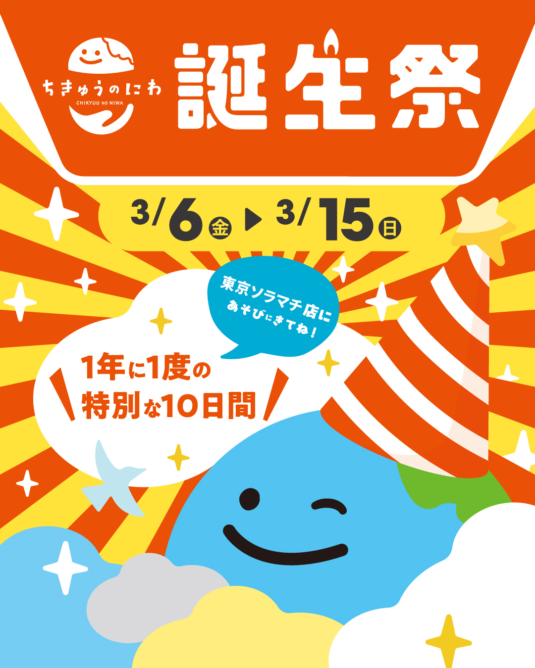 ちきゅうのにわ東京ソラマチ店では、3周年を記念して誕生祭を実施します!