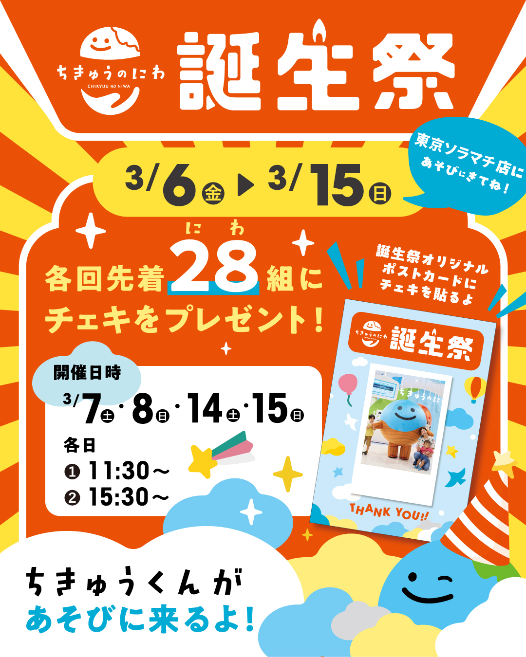 ※「誕生祭記念ガラポン」「アニバーサリーPASSPORT」「ちきゅうくん撮影会」は