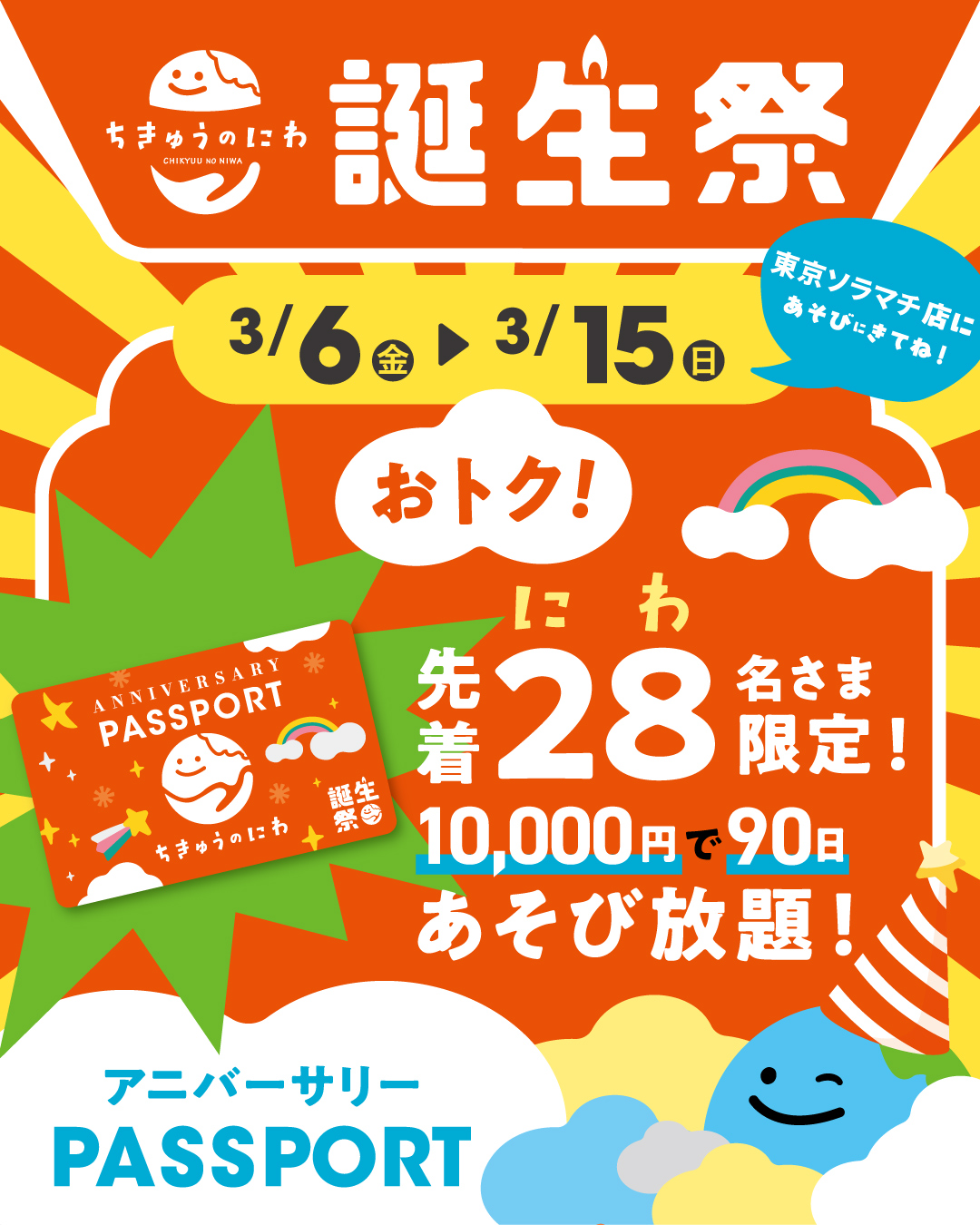 10,000円で何度でもあそべるアニバーサリーPASSPORTを販売します!