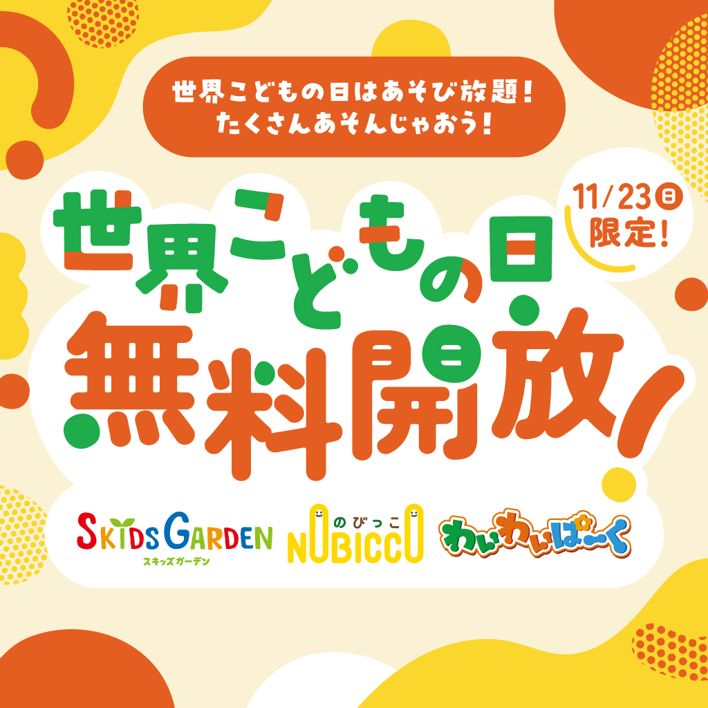 世界こどもの日を記念し、11月23日(日)にプレイグラウンドを無料開放いたします!