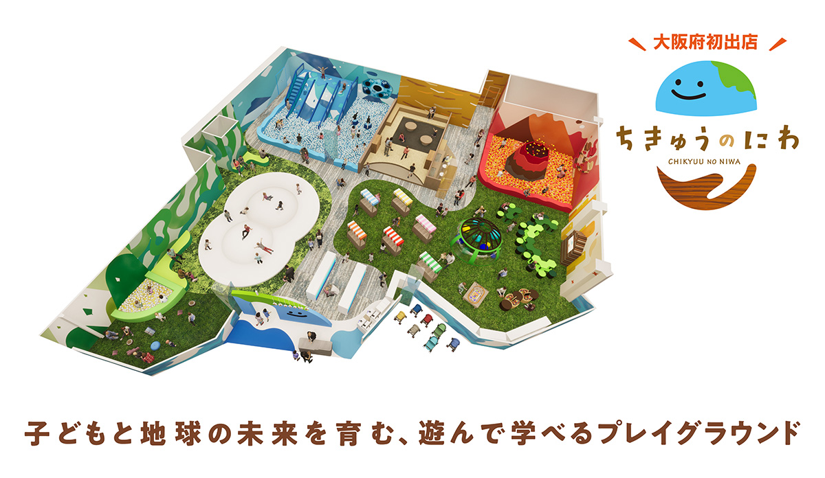 「ちきゅうのにわ」は、0歳から12歳までの子どもとそのファミリーを対象に、地球や自然をテーマにした、遊んで学べるプレイグラウンドです。今回、大阪府初出店となります。
