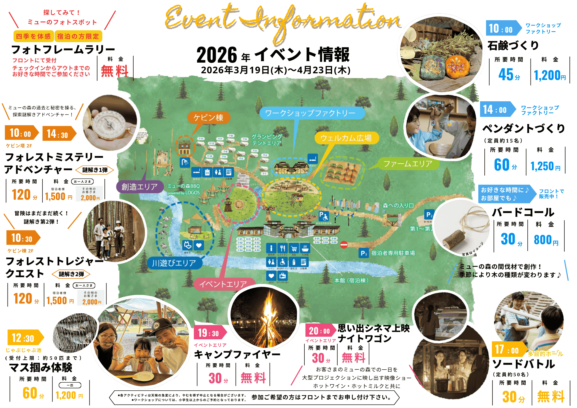 【3/19~4/23イベント】春の冒険!山梨グランピング ミューの森