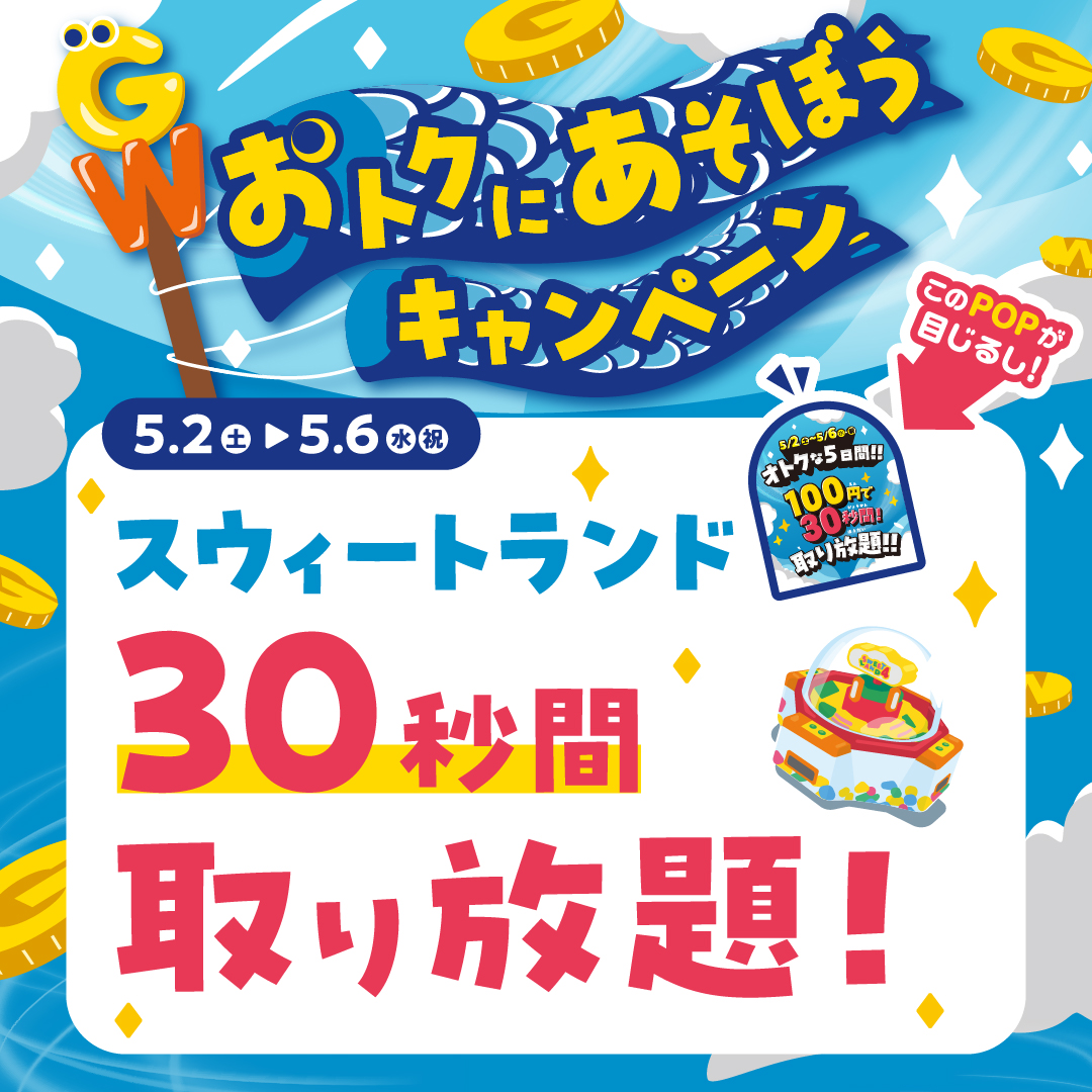 スウィートランドが1回100円で30秒間取り放題に!