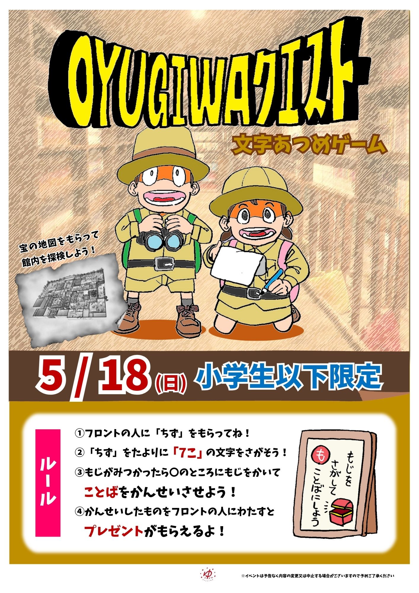 館内はお子様向けの「OYUGIWAクエスト」開催します