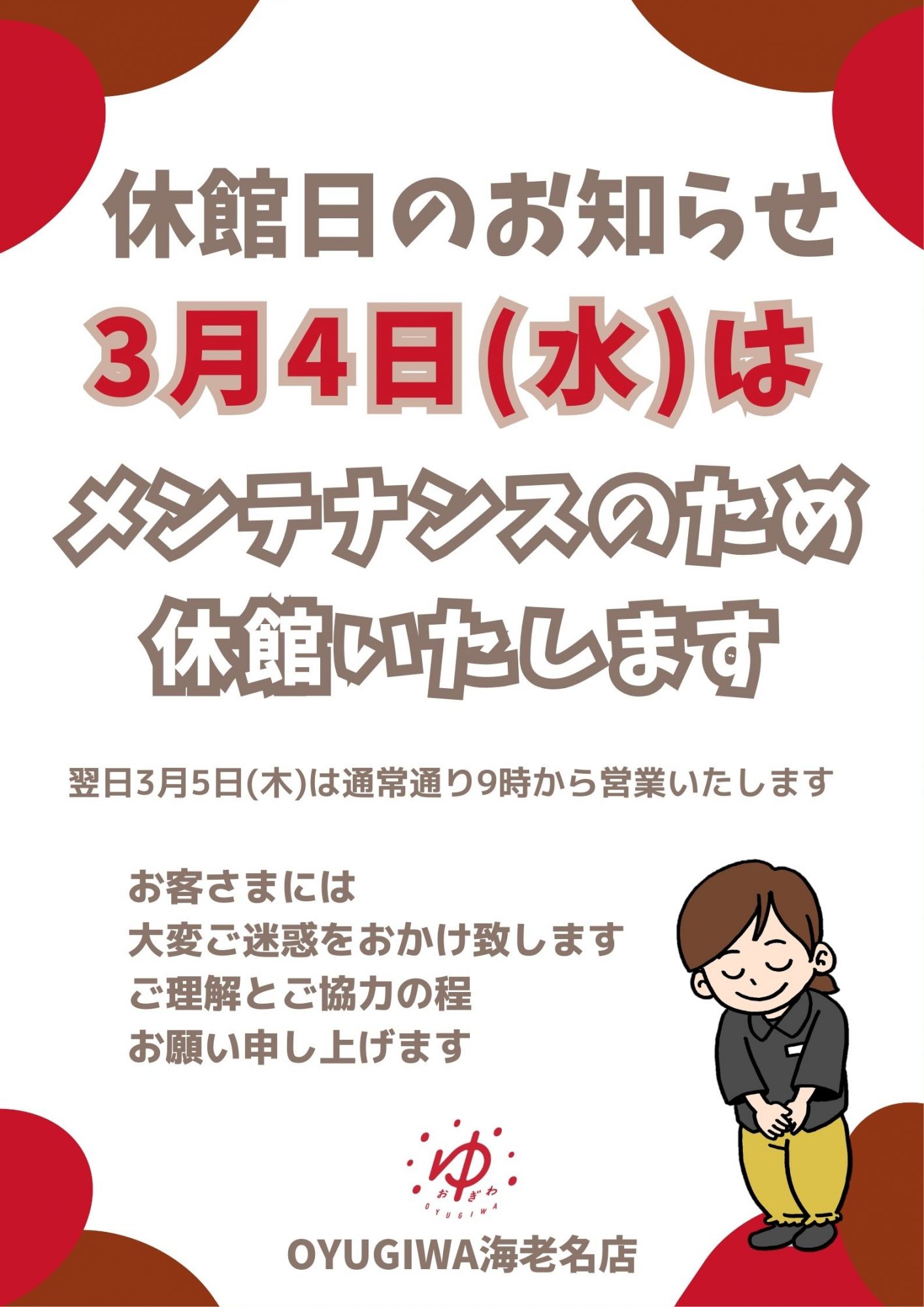 いつもOYUGIWA海老名店にお越しいただきありがとうございます。