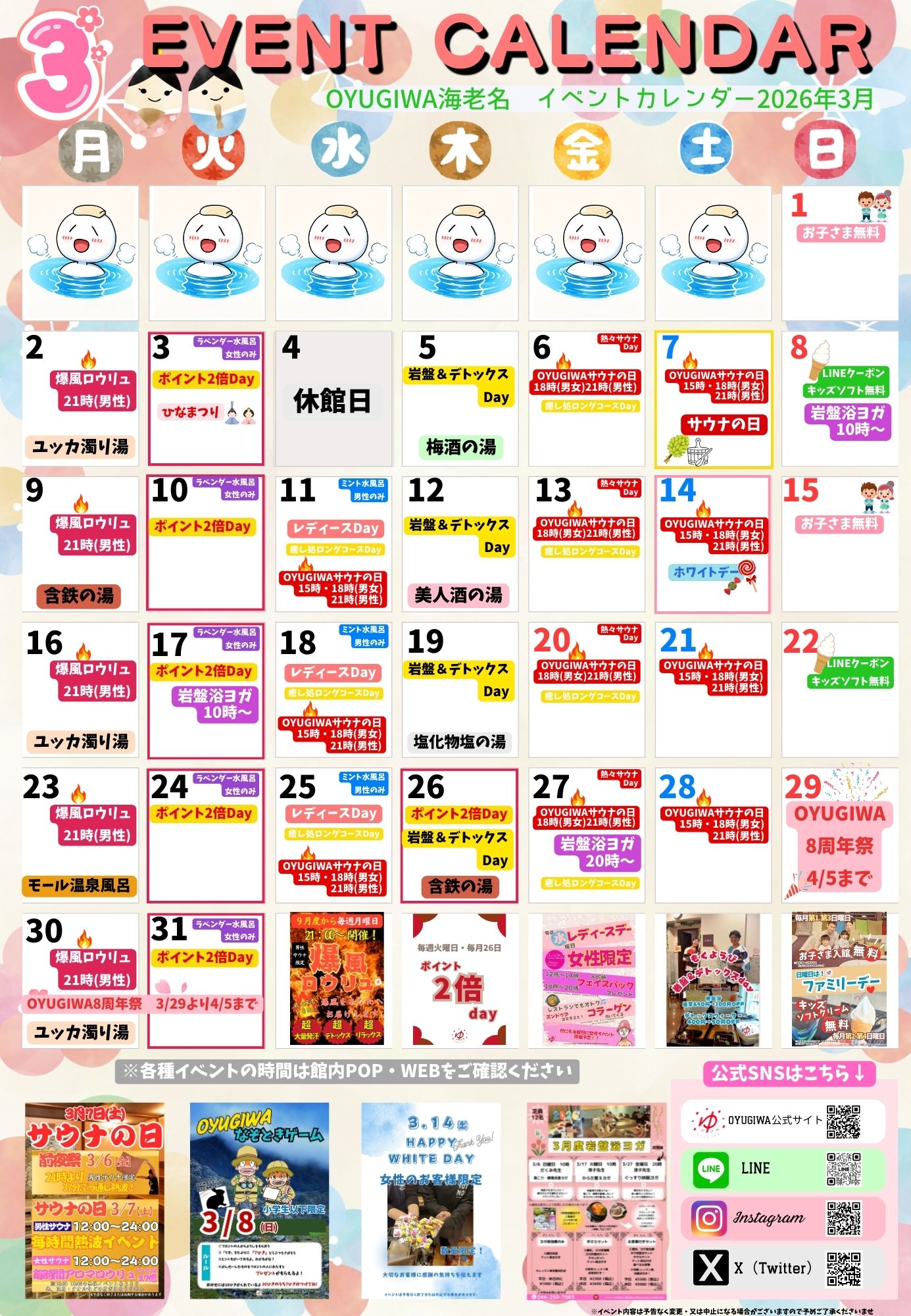 3月もたくさんのイベントをご用意してお待ちしております。