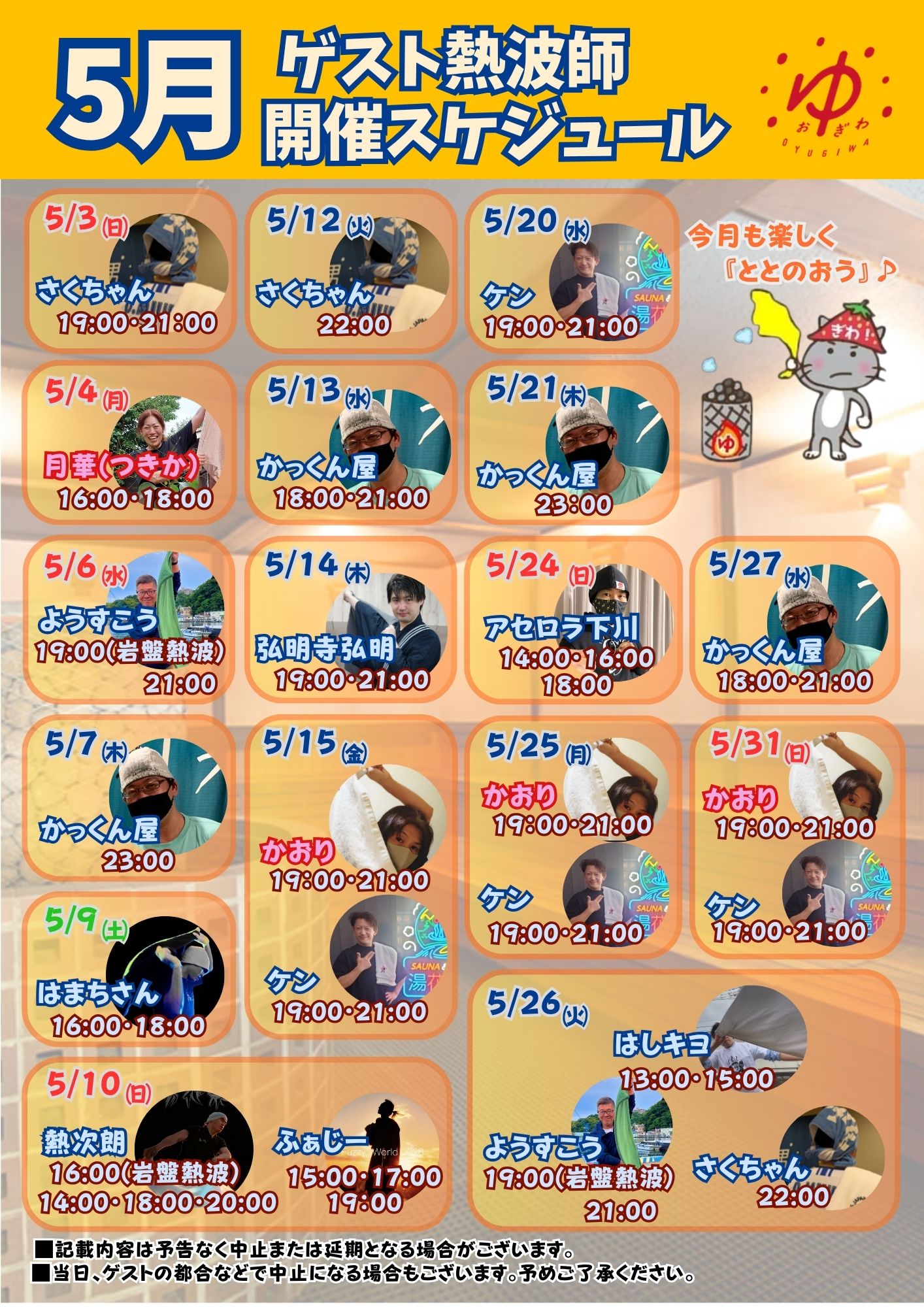 5月ゲスト熱波師カレンダー