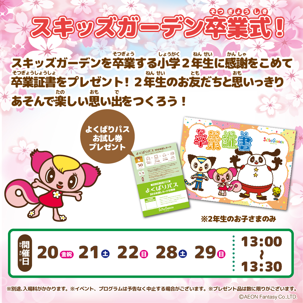 3/27(金)より、スキッズガーデン・キッズーナ・ちきゅうのにわにご入場者いただいたお子さまに先着で、